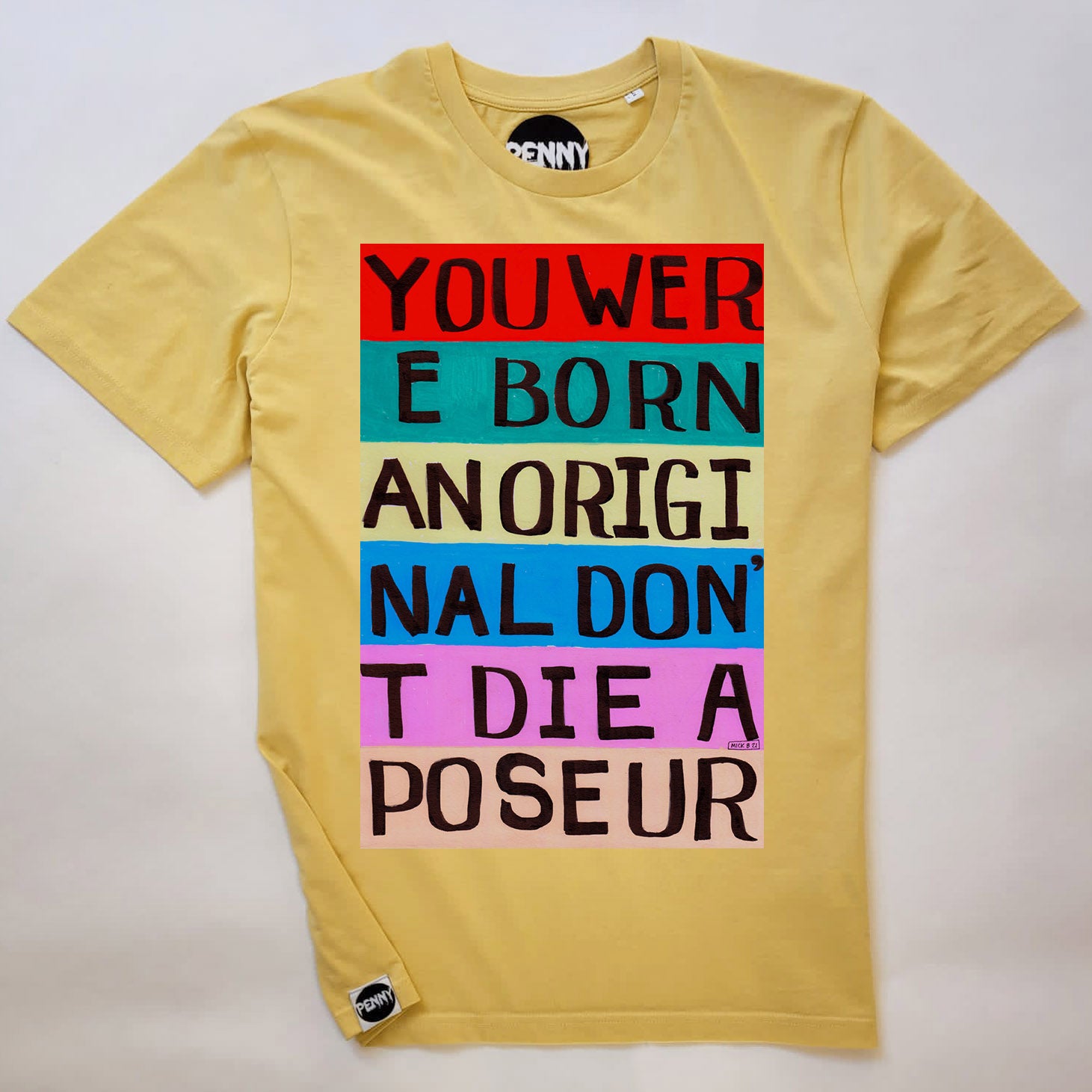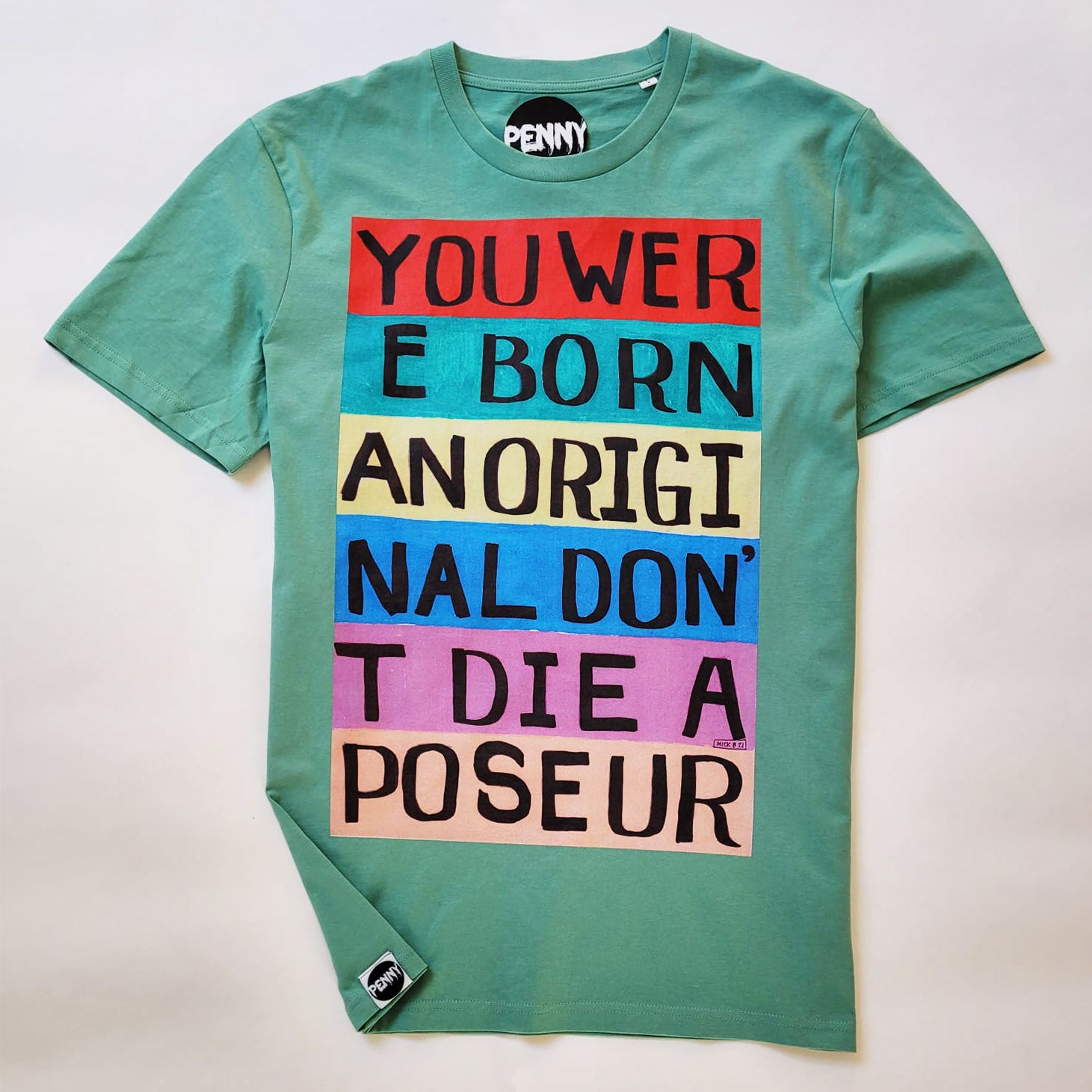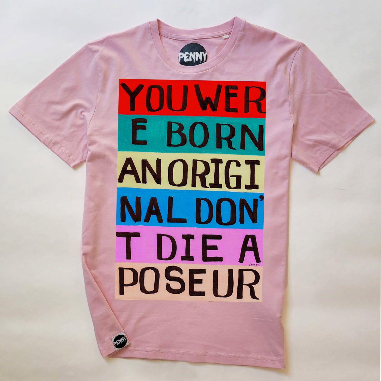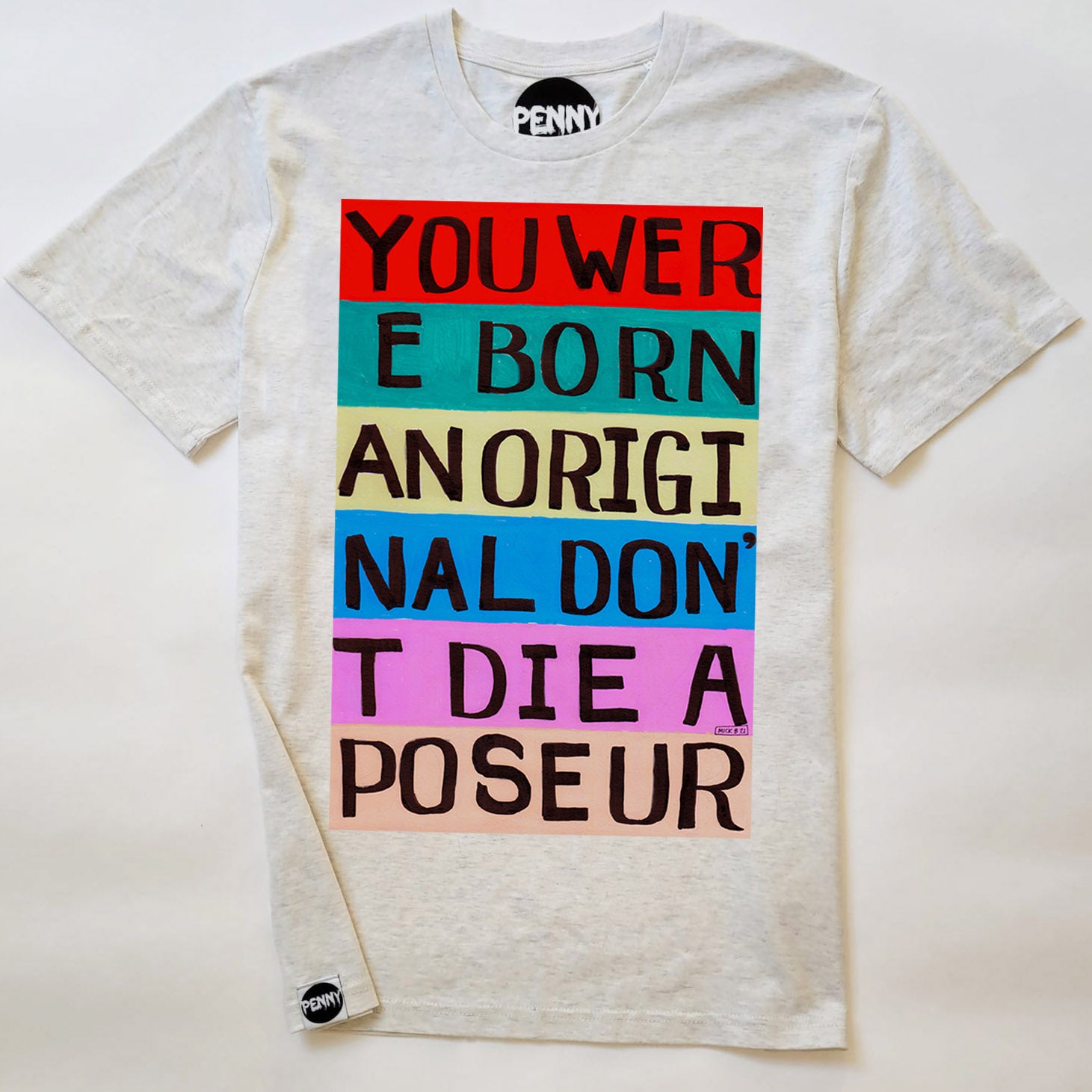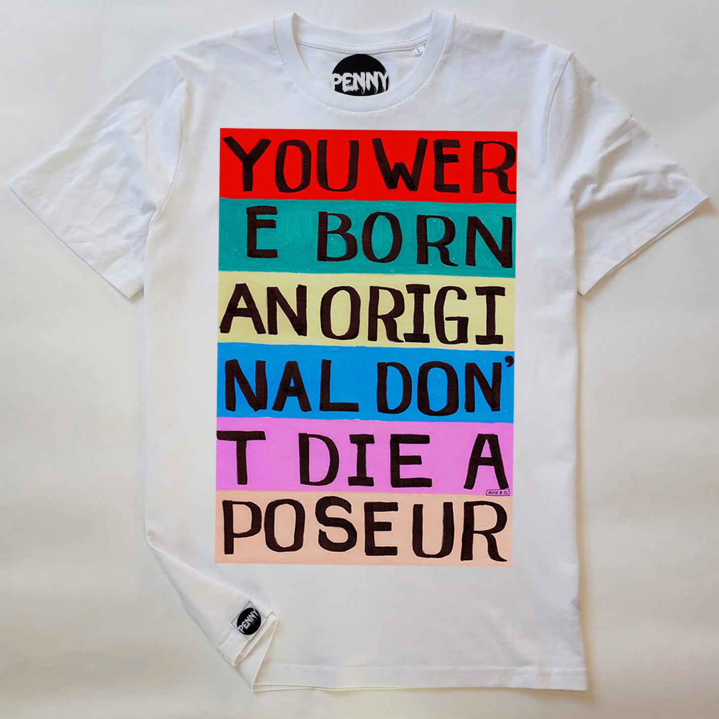 Inspiring you to be fearless and live your true life, "YOU WERE BORN AN ORIGINAL DON'T DIE A POSEUR" this iconic quote is Illustrated by hand in Black Penny's key colours.